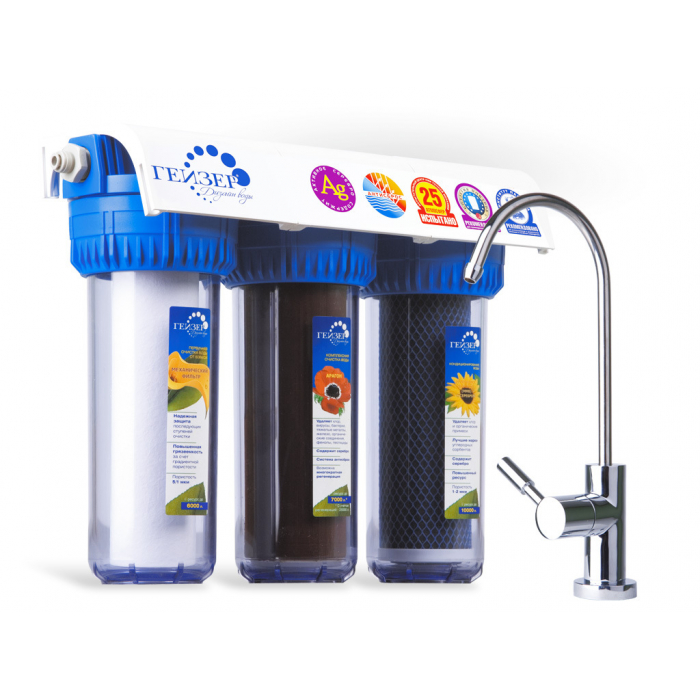 Фильтр Гейзер 3 ИЖ Элита специально разработан для регионов со средним уровнем минерализации. Предназначен для очистки воды с жесткостью 2–4 мг-экв./л (ºЖ).