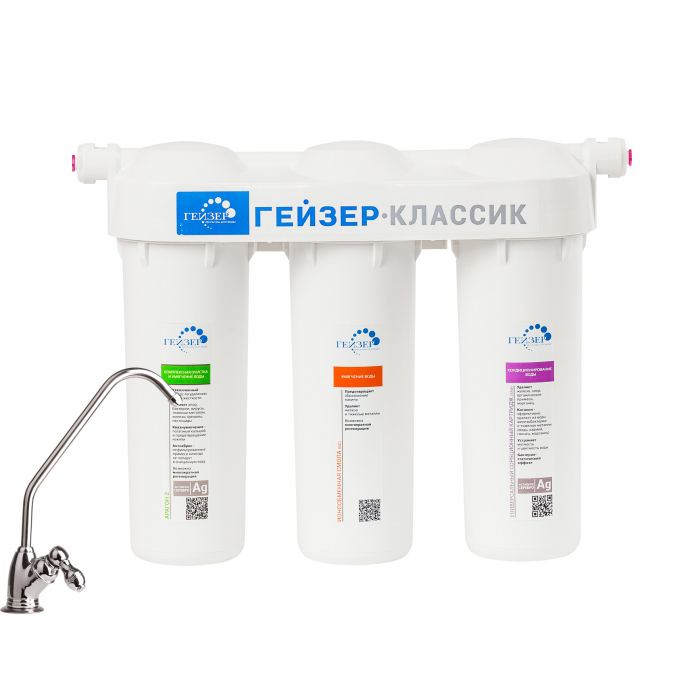 Гейзер Классик для комплексной очистки воды специально разработан для регионов с очень жесткой водой (высокий уровень минерализации).