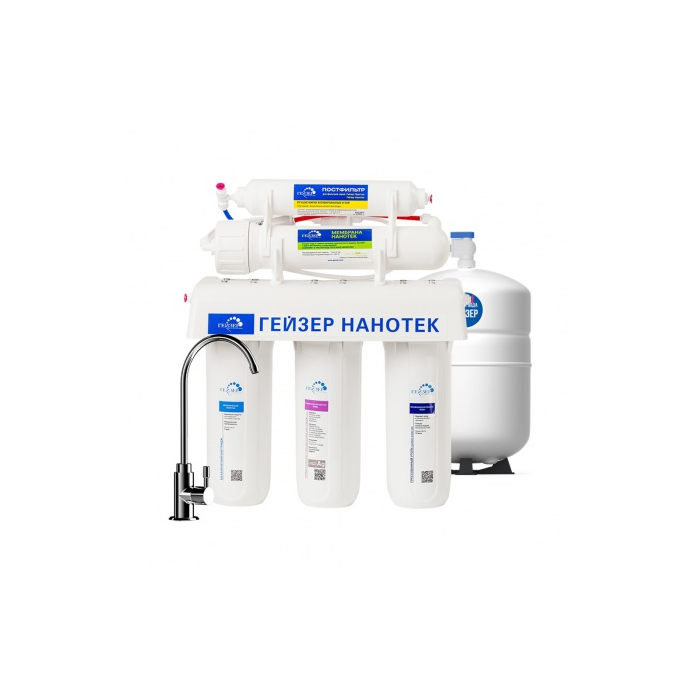 Гейзер Нанотек — это мембранный фильтр, конструктивно схожий с системами обратного осмоса. Основным его отличием является мембрана. Размер её пор в 0,001 мкм наход.