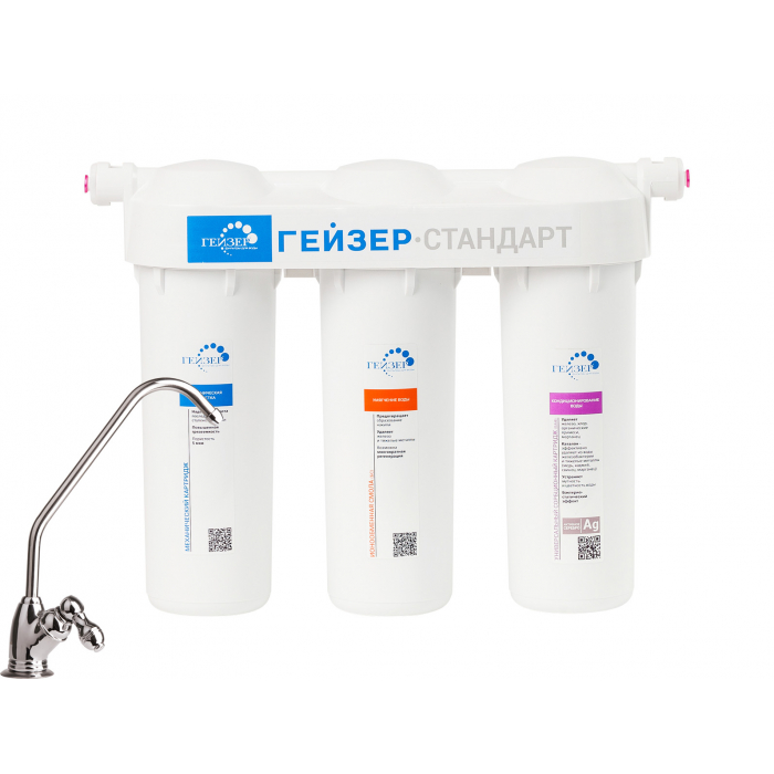 Фильтр Гейзер Стандарт специально разработан для регионов с жесткой водой (средний уровень минерализации).